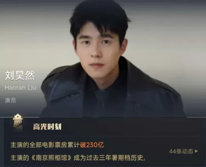 ”27岁刘昊然主演票房突破230亿,跻身中国影史前五,从’国民弟弟’到实力派演员的蜕变之路见证了中国电影市场的代际更迭。”